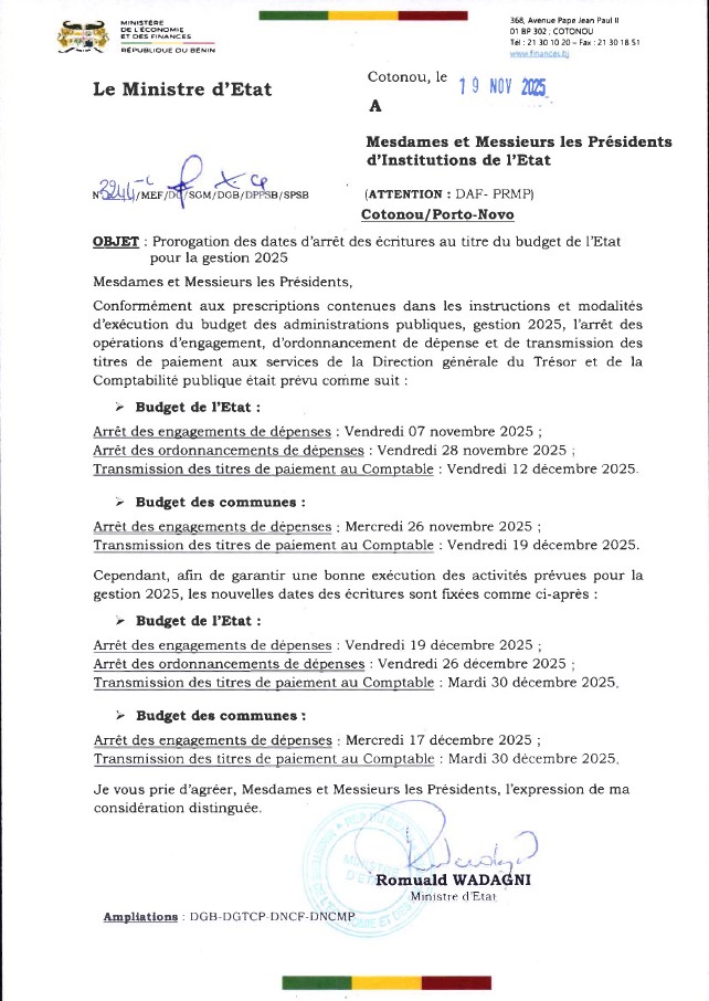 Lettre relative à la simplification des dossiers administratifs dans le cadre de l’exécution des dépenses publiques