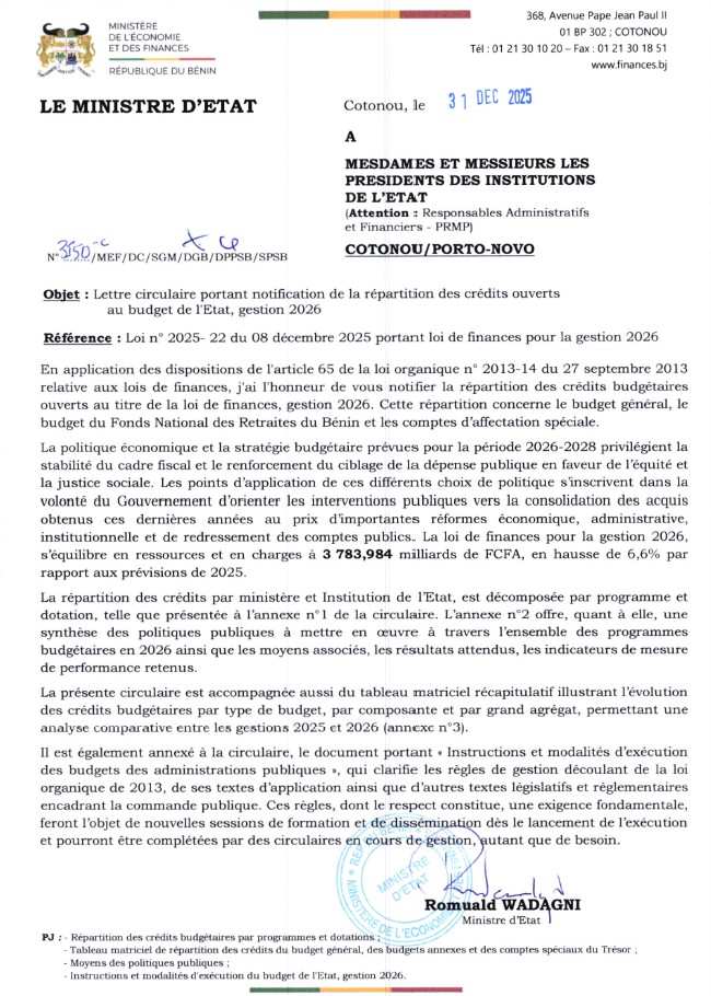 Loi n° 2O25- 22 du 08 décembre 2O25 portant loi de finances pour la gestion 2026